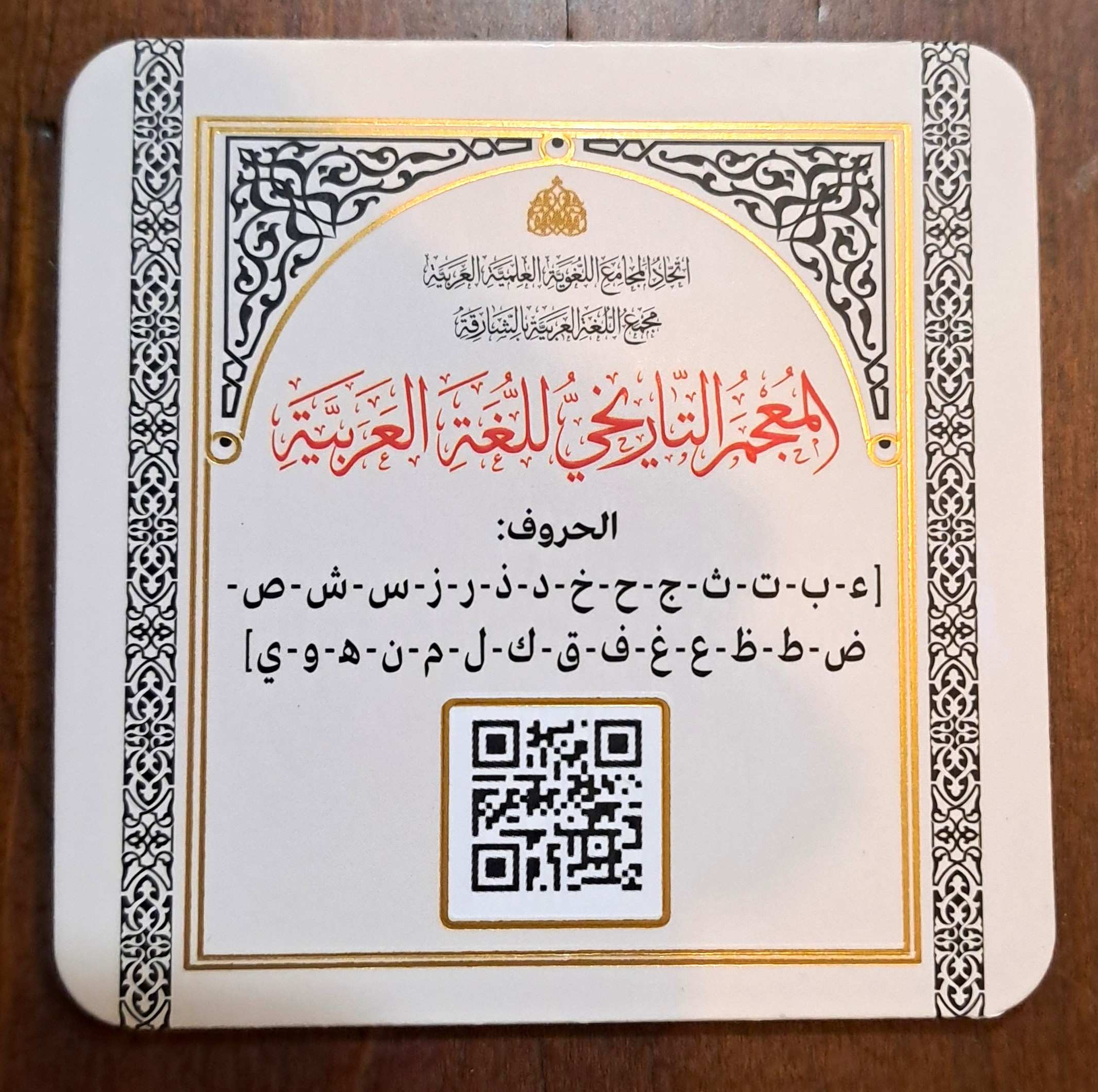 Στο περίπτερο της Ακαδημίας για την Αραβική Γλώσσα της Σάρτζα μια καρτούλα με QR code είναι το εισιτήριο για τη δωρεάν απόκτηση του Ιστορικού Λεξικού σε ψηφιακή μορφή· για τους εραστές του έντυπου βιβλίου τυπώνεται on demand, καταβάλλοντας το εκτυπωτικό κόστος – πρακτική που ενθαρρύνει η Σάρτζα, προσφέροντας υπηρεσίες on demand και σε ξένους εκδότες.