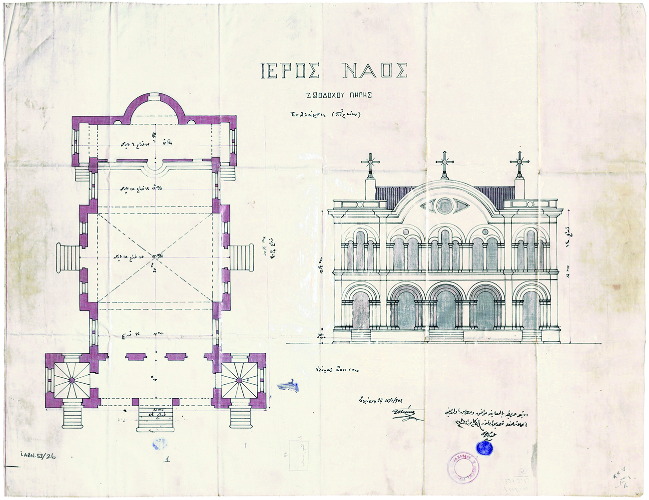 Σχέδιο ανέγερσης του Ι.Ν. Ζωοδόχου Πηγής, στην περιοχή Αλάμπεη στο Κορδελιό (Γ. Πέμπας, 1902)