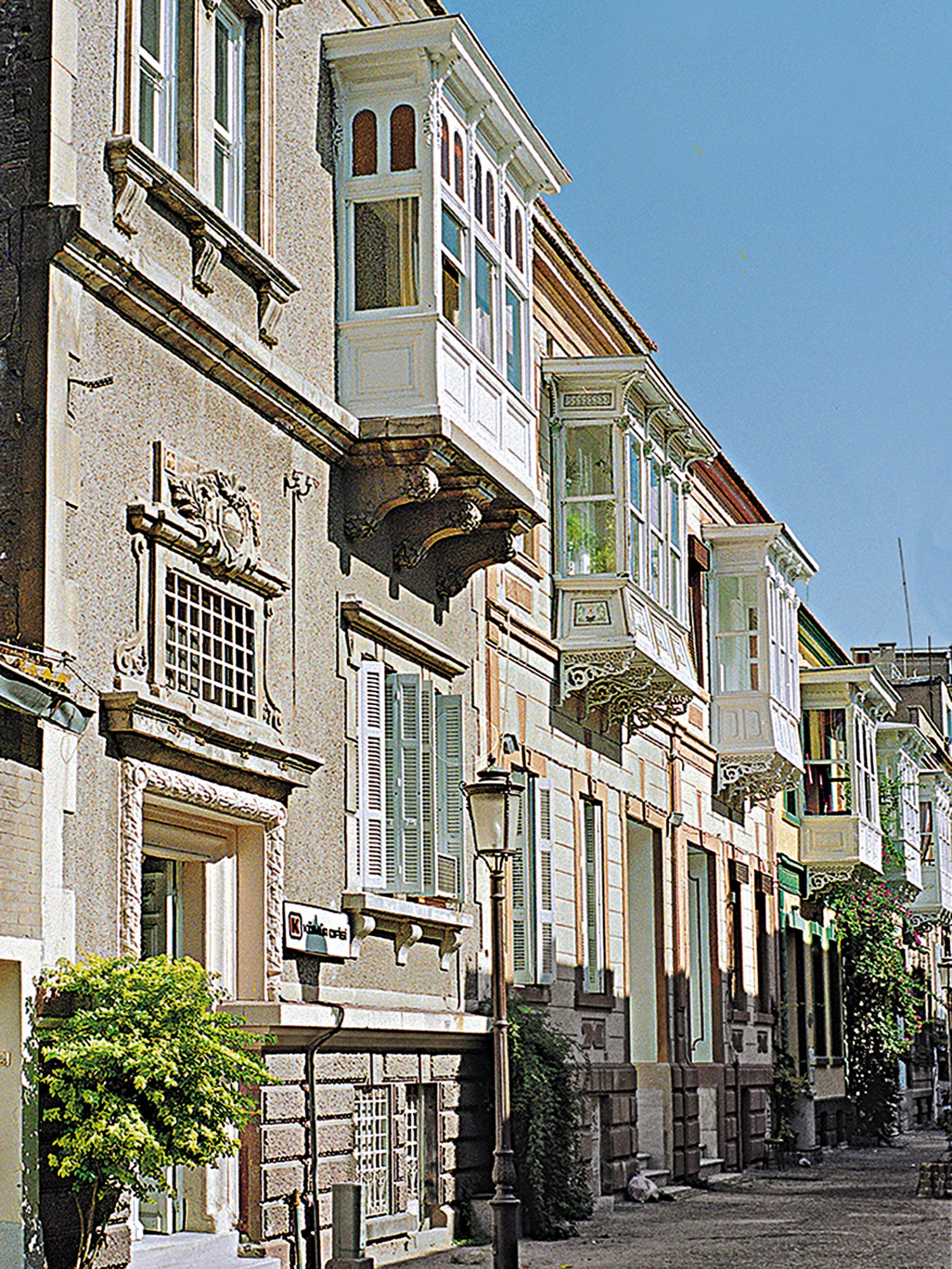 Ο κλειστός εξώστης, με αναπαυτικά σοφαδάκια και σκιασμένος με ειδικά σχεδιασμένα στορ γίνεται το απόγευμα ο χώρος συγκέντρωσης της οικογένειας. Αρχιτέκτονες με σπουδές στην Αθήνα και στην Ευρώπη συμμετέχουν στον σχεδιασμό τους. Εξοπλισμένα με ευρύχωρες σάλες και ανοιχτά χολ, με βοηθητικούς χώρους και δωμάτια υπηρεσίας, αυτά τα αστικά σπίτια ήταν επιπλωμένα με ευρωπαϊκή πολυτέλεια, όμως ελάχιστα δείγματα έχουν διασωθεί στην παραλία της Σμύρνης.