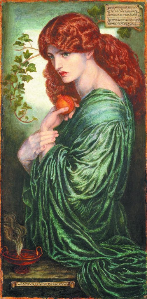 «Περσεφόνη» του Ντάντε Γκαμπριέλ Ροσέτι. Η όγδοη εκδοχή του προραφαηλιτικής τεχνοτροπίας πίνακα (1882) βρίσκεται στο Μουσείο και Πινακοθήκη Τεχνών του Μπέρμιγχαμ