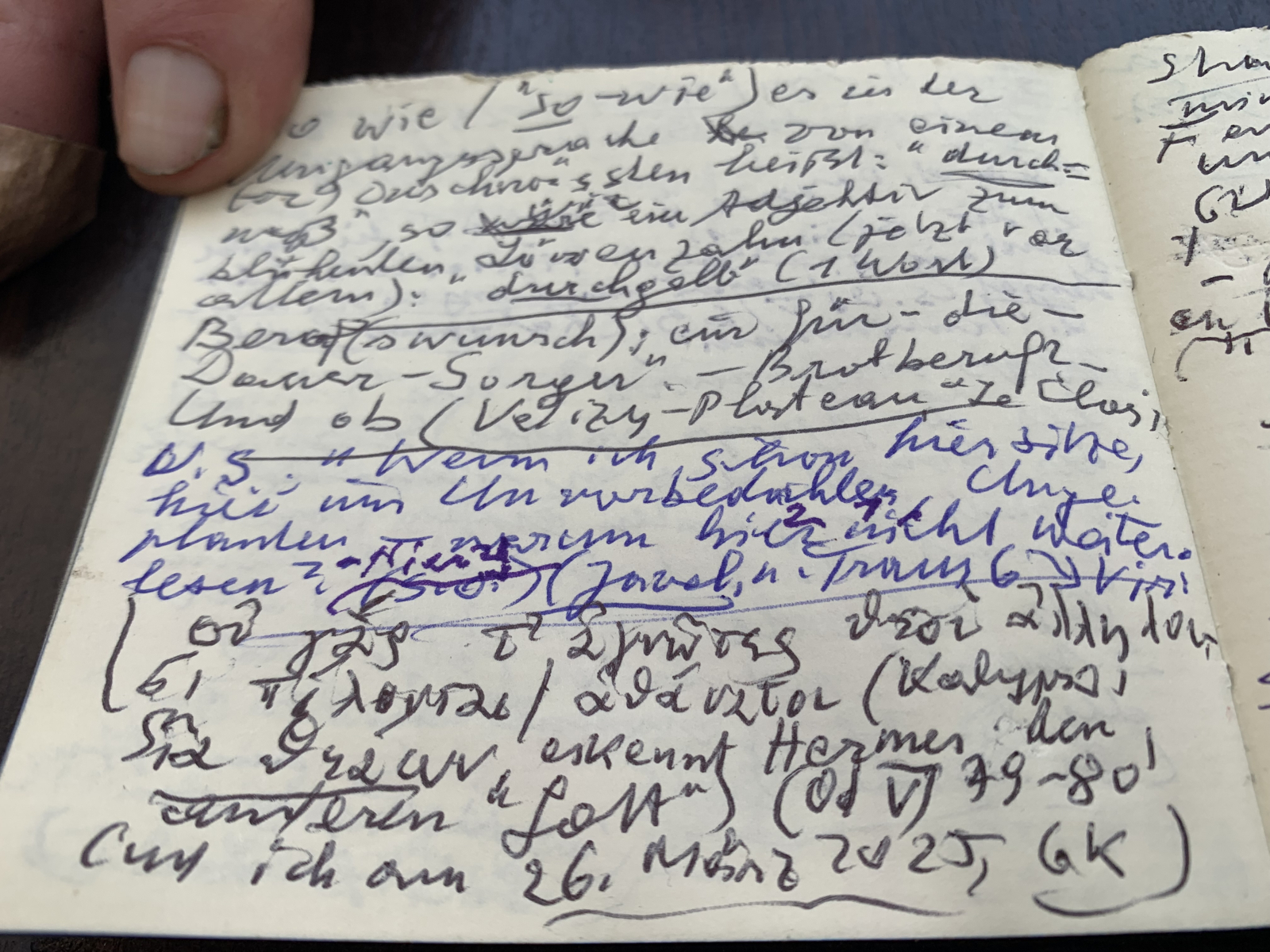 Στίχος της ομηρικής «Οδύσσειας», χειρόγραφα σχολιασμένος από τον αυστριακό νομπελίστα
