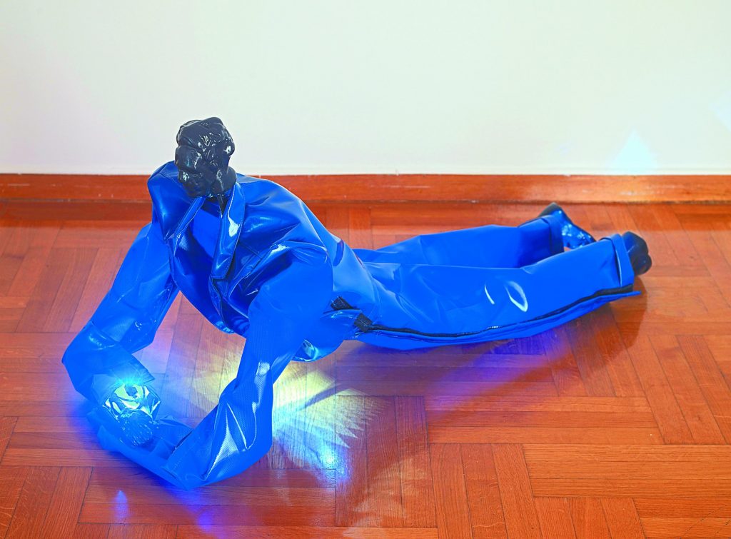 Γιώργος Λάππας. Μπλε ξαπλωτή φιγούρα, 2008. Μέταλλο, πλαστικό ύφασμα και ηλεκτρικές λυχνίες. 50 x 40 x 120 εκ. Παραχώρηση CITRONNE Gallery.