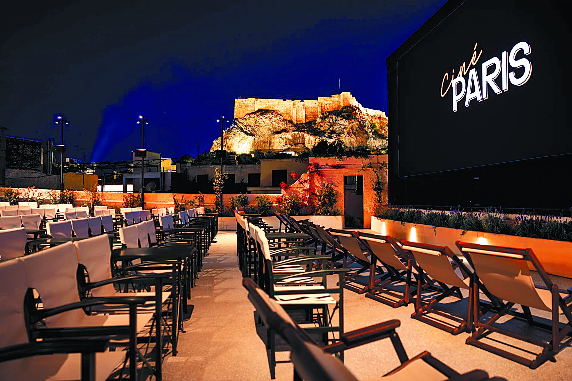 Το πιο χαρμόσυνο γεγονός του εφετινού καλοκαιριού σχετικά με τα θερινά σινεμά είναι η επαναλειτουργία ενός από τα εμβληματικότερα της πρωτεύουσας, το οποίο παρέμεινε κλειστό για περίπου τέσσερα χρόνια: του Cine Paris, στην ταράτσα του χαρακτηρισμένου ως νεότερου μνημείου κτιρίου του Stelios Philanthropic Foundation, στην οδό Κυδαθηναίων στην Πλάκα. Αυτό το σινεμά, που κοιτάζοντας προς την οθόνη του βλέπεις στα αριστερά μια πανέμορφη θέα της Ακρόπολης, άρχισε να λειτουργεί στη δεκαετία του 1920.