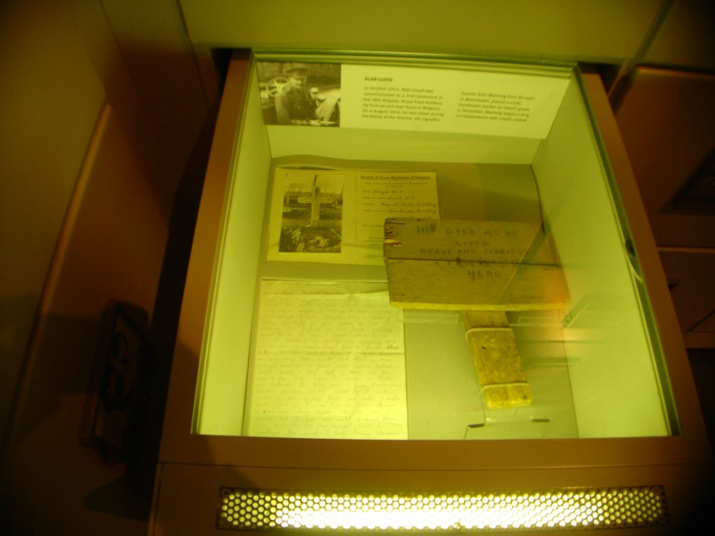 Προσωπικά αντικείμενα του βρετανού στρατιώτη Αλαν Λόιντ που σκοτώθηκε στις 4 Αυγούστου 1916 στη Μάχη του Σομ. Πρόκειται για τη φονικότερη μάχη (μετά από αυτήν του Στάλινγκραντ) στην Ιστορία. Ξεκίνησε την 1η Ιουλίου 1916 και τελείωσε στις 18 Νοεμβρίου 1916 με απολογισμό πάνω από ένα εκατομμύριο νεκρούς.