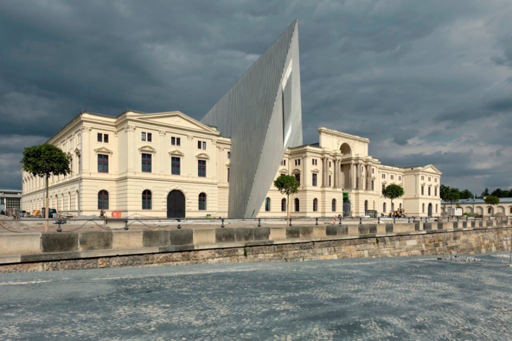 Το Εθνικό Μουσείο Πολεμικής Ιστορίας της Γερμανίας στη Δρέσδη. Μια μεταλλική, διαγώνια τριγωνική κατασκευή, ύψους 35 μ. και 5 ορόφων, ως κεραυνός και κραυγή για τη βιαιότητα του πολέμου, σχίζει το κτίριο τού 1876 σε δύο τμήματα (ανατολικό για τον Α’ Παγκόσμιο Πόλεμο και δυτικό για τον Β’ Παγκόσμιο Πόλεμο και την ψυχροπολεμική περίοδο).