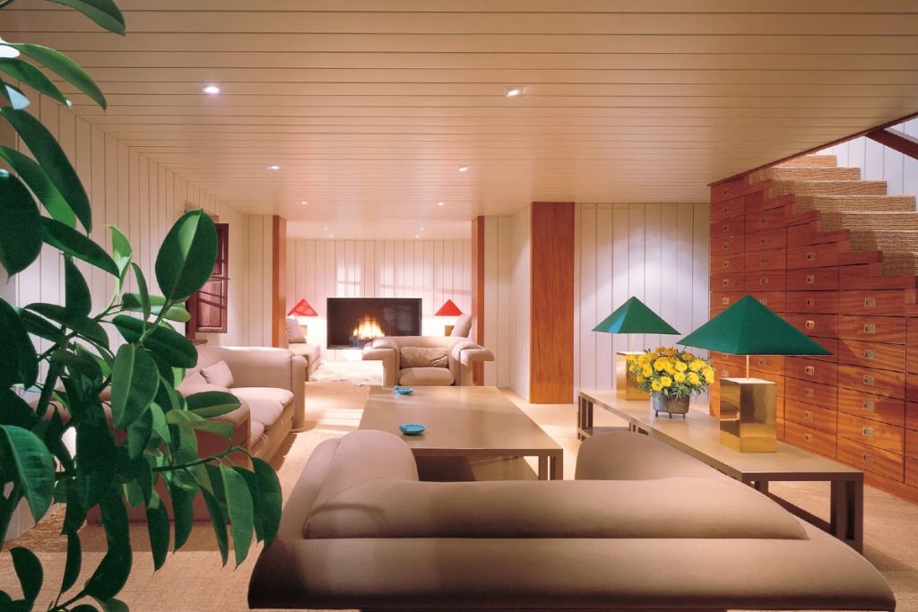 Το λιτό καθιστικό στην εξοχική κατοικία του Αρμάνι στην Τοσκάνη.