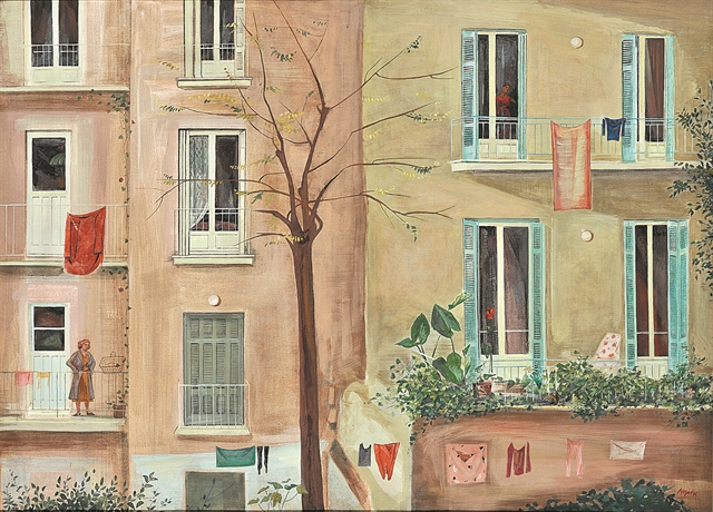 Για να μην πούμε για τις βιτρίνες καταστημάτων του Γιώργου Παραλή (1908-1975) αλλά και τον «Νεροχύτη της Βαρβάρας» (1971-75), λεπτομέρεια του οποίου κοσμεί την πρόσκληση της έκθεσης. Εντύπωση προκαλούν και τα χαρακτικά του κολορίστα Παναγιώτη Τέτση με την εργατιά της «Οικοδομής» ή το γεγονός ότι ο Βλάσης Κανιάρης πέρασε και την τσαρουχική περίοδό του αποτυπώνοντας την Αθήνα με σκηνογραφική διάθεση («Σπουδή για την Αθήνα», 1956).