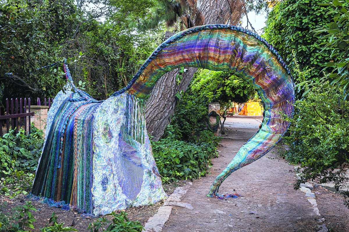 Αλλοτε γίνεται πιο έμμεσα, όπως με τη «Δελφύνη» (2025) της Ναταλίας Παπαδοπούλου. Ενα μυθολογικό υβρίδιο από σίδηρο, φωτοευαίσθητα νήματα και κατοπτρικά στοιχεία, που λαμπυρίζει στο φως σαν πλάσμα που ανήκει εξίσου στη φύση και στη φαντασία.