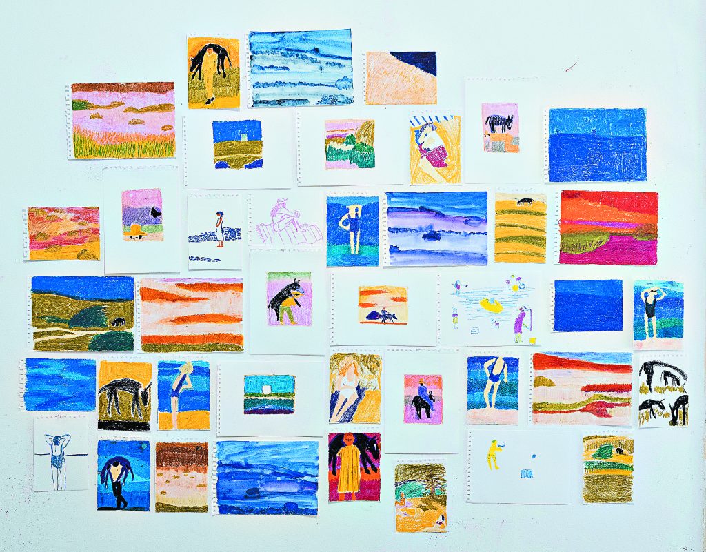 Το έργο της Ιωάννας Λημνιού «Tracing Portraits» (σχέδια, λαδοπαστέλ σε χαρτί και ακουαρέλες).