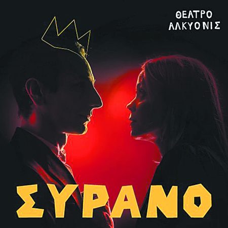 Η αφίσα της παράστασης «Συρανό» στο θέατρο Αλκυονίς.