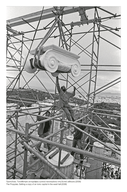 «Οι φωτογραφίες που εκτίθενται καλύπτουν τη χρονική περίοδο 1975-2015 και αποτελούν τεκμήριο των αναστηλωτικών εργασιών που πραγματοποιήθηκαν στον Παρθενώνα, στο Ερέχθειο, στα Προπύλαια και στον Ναό της Αθηνάς Νίκης» αναφέρει μιλώντας στο «Βήμα» η Βασιλική Ελευθερίου, διευθύντρια της Υπηρεσίας Συντήρησης Μνημείων Ακρόπολης. «Οι εικόνες αυτές ελήφθησαν από το προσωπικό που επέβλεπε τις εργασίες».