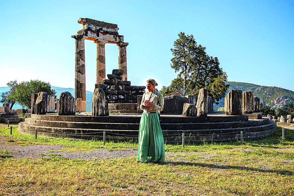 Η Αποστολία Παπαδαμάκη παρουσιάζει τους «Χρησμούς του νερού» στους Δελφούς. / Φωτ.: Αρείων Στεφανίδης