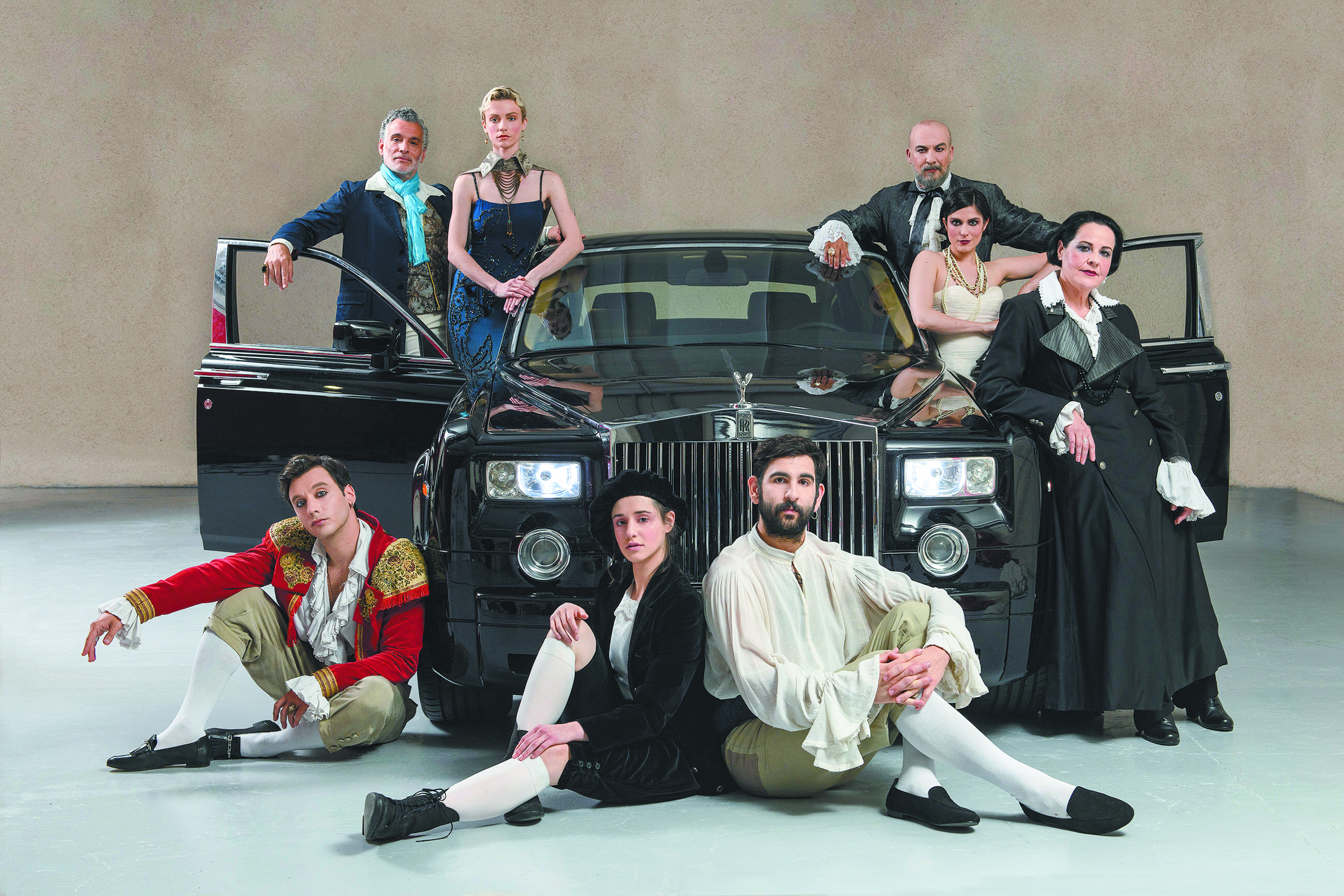 Ο Στάθης Κόικας (αριστερά) και ο Δημήτρης Φιλιππίδης μοιράζονται τον ρόλο του Δον Ζουάν – ανάμεσά τους η Ειρήνη Λαφαζάνη.