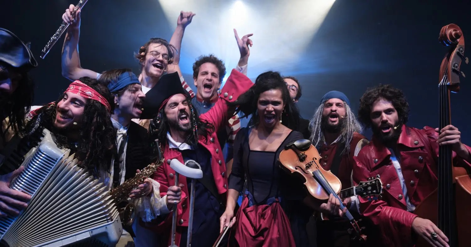 Παλιότερα είχε ανέβει στο Μέγαρο Μουσικής Αθηνών ως μια περιπατητική θεατρική διαδρομή, όμως το βασικό κοινό που έχει η τωρινή με την παλιότερη παράσταση είναι μάλλον η προδιαγεγραμμένη μεγάλη επιτυχία της. Ηδη έχει αρχίσει να διαδίδεται από στόμα σε στόμα χάρη στη μεταδοτική ενέργεια του δεκαμελούς θιάσου-ορχήστρα που ερμηνεύει τις μελωδίες του Κορνήλιου Σελαμσή, βασισμένες σε ναυτικούς σκοπούς και πειρατικά τραγούδια του 17ου και του 18ου αιώνα (και σε στίχους Θωμά Μοσχόπουλου).