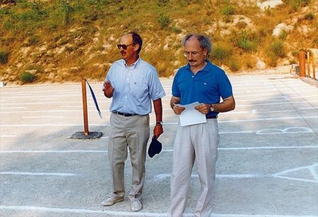Συζητώντας περί Μακεδονικών θολωτών κτισμάτων με τον καθηγητή Μανώλη Ανδρόνικο στην Βεργίνα, Μάιος 1988