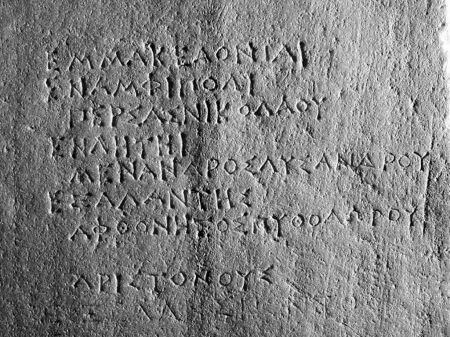 Λεπτομέρεια του τμήματος της επιγραφής των θεωροδόκων που αναφέρει τους Νέμεους αντιπροσώπους στην Μακεδονία