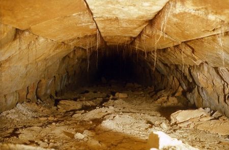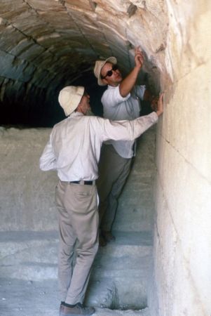 Δείχνοντας στον καθηγητή Vanderpool ένα αρχαίο γκράφιτο στον τοίχο της σήραγγας, Αύγουστος 1978