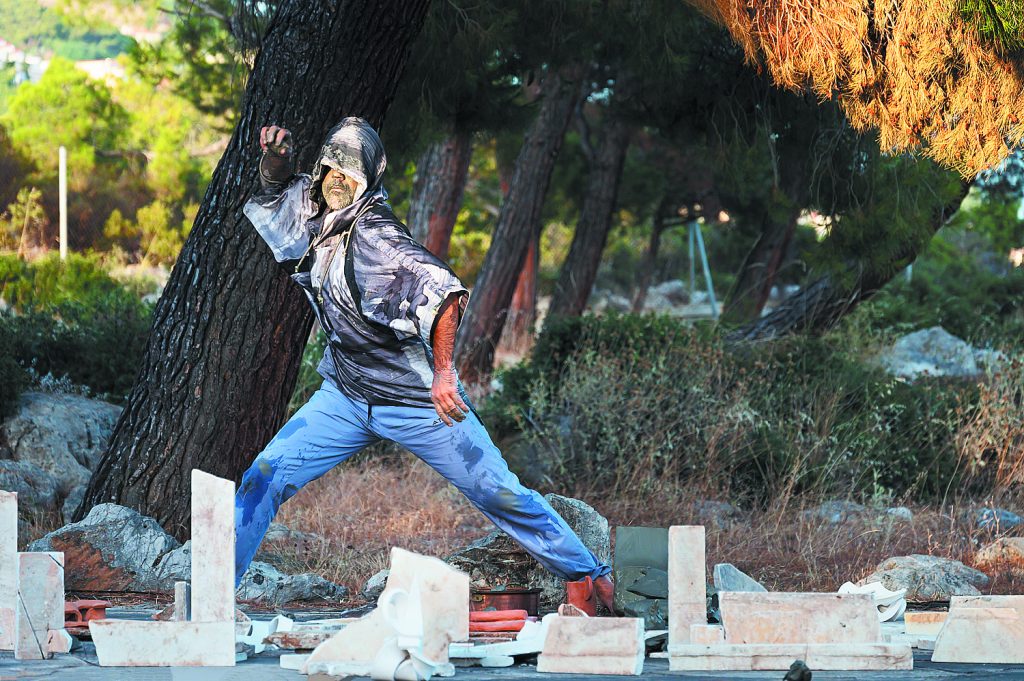 Το καλλιτεχνικό δίδυμο Vaskos (Βασίλης Νούλας και Κώστας Τζημούλης) στην εικαστική επιτέλεση «Γράμματα από το νησί Tioman». / Φωτ.: Μαρία Τουλίτσα & PCAI