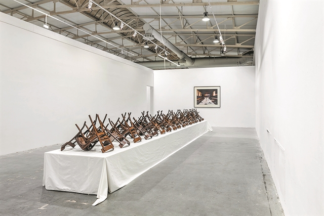 Τα έργα που σε υποδέχονται στον εκθεσιακό χώρο «Νίκος Κεσσανλής» της ΑΣΚΤ δεν σε προϊδεάζουν για όσα πρόκειται να ακολουθήσουν, εκτός ίσως από το γεγονός ότι ο καλλιτέχνης που εκθέτει είναι ικανός για χειρονομίες ισχυρές, φαινομενικά απολύτως ελεύθερες που ωστόσο διακατέχονται από μια εσωτερική λογική και δόμηση. Πρόκειται για μνημειωδών διαστάσεων σχέδια από χοντρά λαδοπαστέλ («Σχέδια», 2020-22) δομημένα από γραμμές φυγής και όρια, δομές που θυμίζουν πολεμικές μηχανές. Αυτή η πρώτη επαφή προκαλεί στιγμιαία μια μικρή σύγχυση. Μα δεν είναι ο Μανώλης Μπαμπούσης πρωτίστως αναγνωρισμένος ως φωτογράφος;