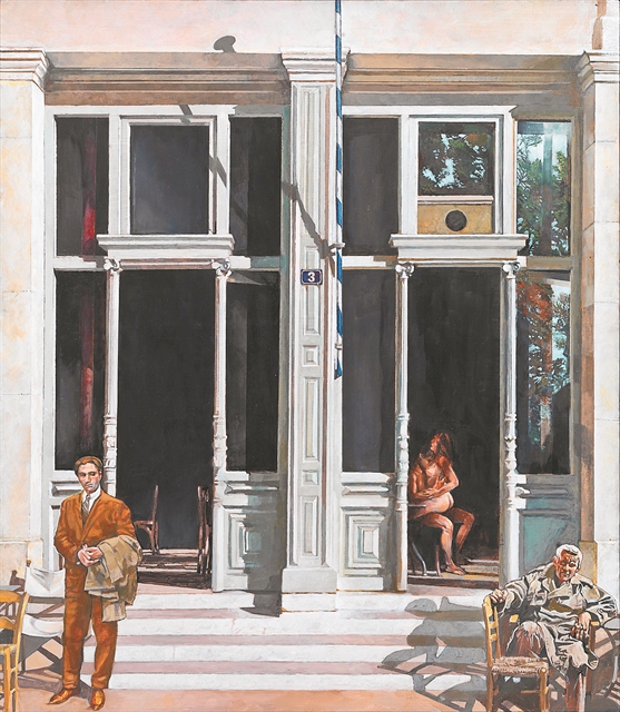 Αυτή η ισορροπία είναι ευδιάκριτη στα 24 έργα που παρουσιάζει στην έκθεση «Μυθιστορικά» (ως τις 14/3) στην Πινακοθήκη Νίκου Χατζηκυριάκου-Γκίκα. Πρόκειται για πίνακες που έχει φιλοτεχνήσει τα τελευταία σαράντα χρόνια, προσωπικές εμπειρίες ή «μυθιστορίες» που ανακατεύονται με κοινωνικά και πολιτικά γεγονότα που διαμόρφωσαν τη ζωή του και δίνουν το έναυσμα για αντίστοιχες προσωπικές αναγνώσεις από την πλευρά των θεατών – άλλωστε η μεγάλη Ιστορία μπερδεύεται με τη μικρή με υπαινικτικό τρόπο, και μάλιστα κάποιες φορές παραπέμποντας στην αλληγορία. Η δε επιλογή της Πινακοθήκης Γκίκα της οδού Κριεζώτου ως ο χώρος που θα φιλοξενήσει τα έργα δεν είναι καθόλου τυχαία.