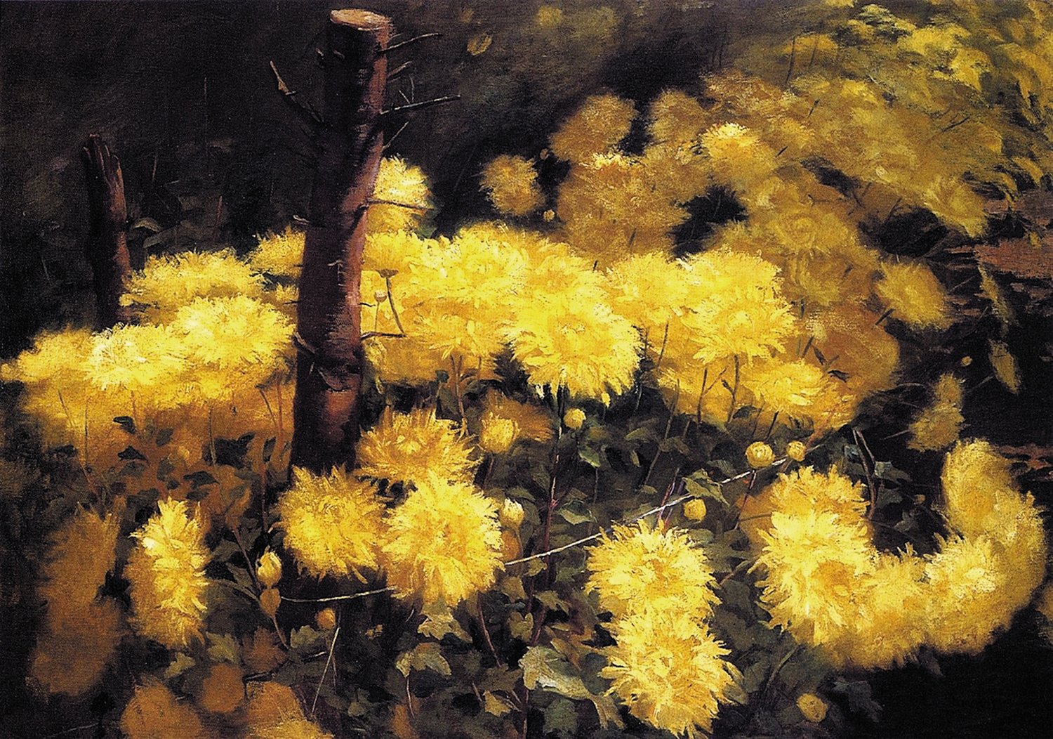 Η αμερικανίδα ζωγράφος Φάνι Ελίζα Ντιβάλ στο έργο «Chrysanthemums» (1891) ακολουθεί μια πιο κλασική θα λέγαμε προσέγγιση στην απεικόνιση λουλουδιών. Η προσοχή στη λεπτομέρεια και η σχολαστικότητα στην απόδοση των χρυσανθέμων αντανακλούν την ακαδημαϊκή προσέγγιση της εποχής.