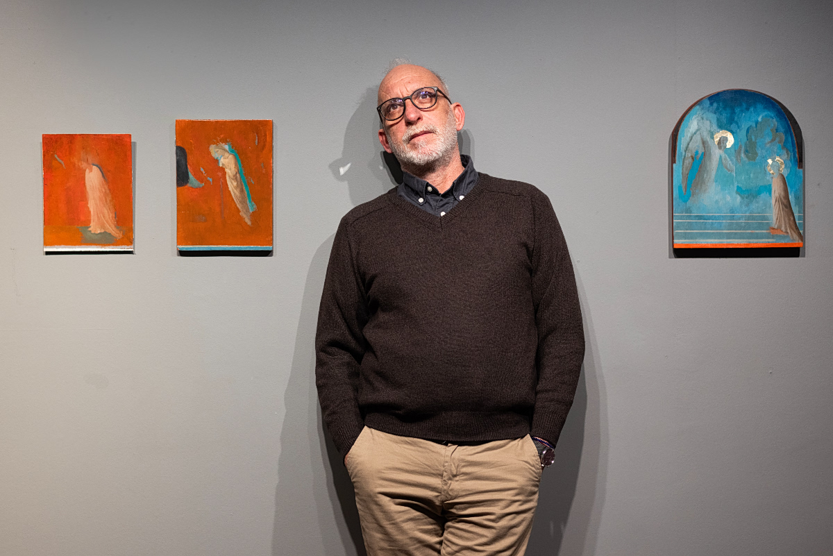 Πάντως, παρότι δεν έχει βεβαιότητες, διαθέτει εμμονές και πολύ συγκεκριμένες. Του αρέσει να ζωγραφίζει Ευαγγελισμούς – «μη με ρωτάτε γιατί, δεν μπορώ να δώσω απάντηση» –, να δημιουργεί «μεταπαραγωγές» από πίνακες άλλων καλλιτεχνών και να δουλεύει σε μικρή κλίμακα. Αυτό θα φανεί στην τωρινή του έκθεση στο Κολωνάκι, όπου θα παρουσιαστεί δουλειά της περιόδου από το 2021 μέχρι σήμερα, καθώς και ορισμένα έργα από τη συμμετοχή σε έκθεση στο MOMus – Μουσείο Σύγχρονης Τέχνης Θεσσαλονίκης, μαζί με τους Ηλία Παπαηλιάκη και Βασίλη Βασιλακάκη (επιμέλεια: Αρετή Λεοπούλου, Γιάννης Μπόλης).