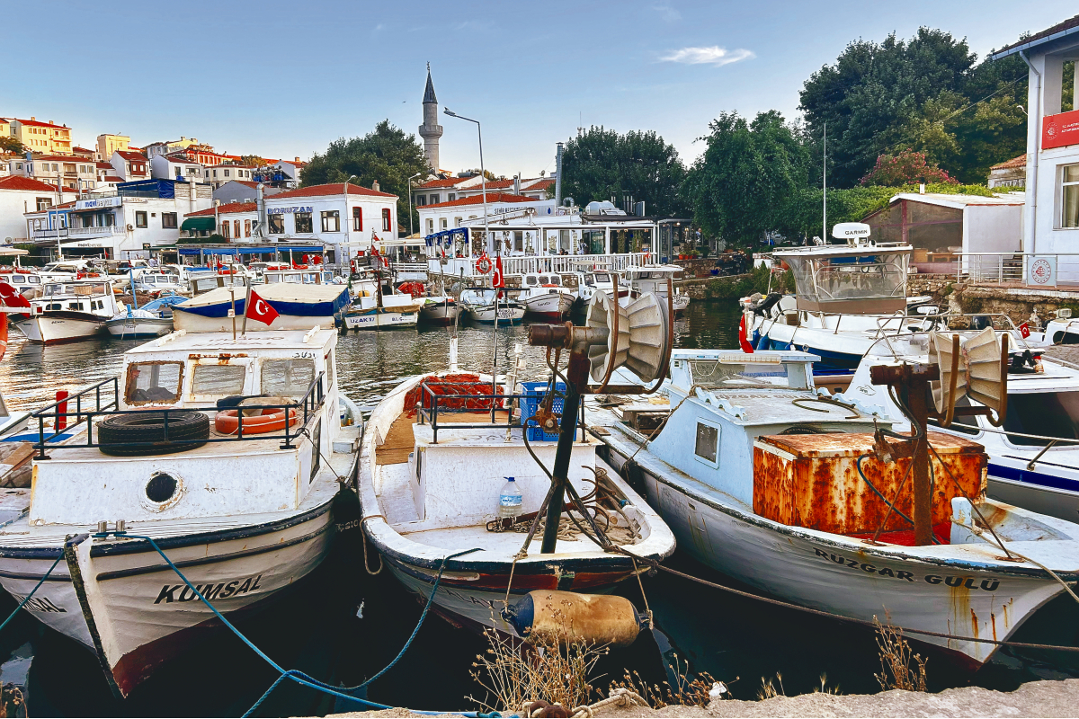 Τίποτα δεν μπορεί να σε προϊδεάζει ωστόσο για τις συνθήκες και εικόνες που απαντάς προσεγγίζοντας με το ferry boat, μέσα σε μισή ώρα από τον μόλο του Γκεγικλί, τη νησιωτική μινιατούρα – τη διατρέχεις με όχημα σε 25 λεπτά! – με τη δυσανάλογη του μεγέθους της ιστορία – λόγω της στρατηγικής θέσης στο άνοιγμα των Δαρδανελίων –, έχοντας προηγουμένως περάσει από τη Μυτιλήνη στο Αϊβαλί.