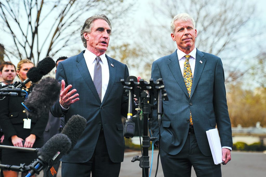 Οι αμερικανοί υπουργοί Ενέργειας Κρις Ράιτ (δεξιά) και Εσωτερικών Νταγκ Μπέργκαμ