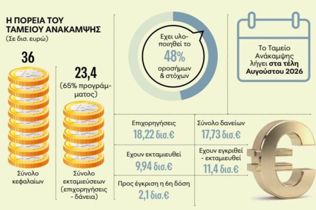 Αντιμέτωπη με ένα ασφυκτικό χρονικό πλαίσιο 10 μηνών βρίσκεται η κυβέρνηση προκειμένου να καταφέρει να υλοποιήσει όλα τα ορόσημα που απομένουν έως τα τέλη Αυγούστου 2026, για να εξασφαλίσει την εκταμίευση-απορρόφηση του συνόλου των 36 δισ. ευρώ, που αφορούν το ελληνικό πρόγραμμα του Ταμείου Ανάκαμψης και Ανθεκτικότητας.