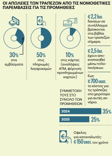 Ακολούθησε στις αρχές της φετινής χρονιάς το κούρεμα των προμηθειών σε εμβάσματα και πληρωμές λογαριασμών, ενώ τον περασμένο Αύγουστο καταργήθηκε κάθε χρέωση στις αναλήψεις μετρητών από ΑΤΜ. Ταυτόχρονα, οι συστημικοί όμιλοι έχουν ήδη εισφέρει 100 εκατ. ευρώ για τον εκσυγχρονισμό των δημόσιων σχολείων και έπονται άλλα 300 εκατ. ευρώ έως το 2027.