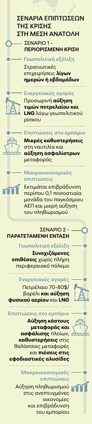 Το μέγεθος των οικονομικών επιπτώσεων πάντως θα εξαρτηθεί από τη διάρκεια της σύγκρουσης. Ενα σύντομο επεισόδιο θα είναι μια κακή παρένθεση, και δεν αποκλείεται να ακολουθήσει ένα θετικό… rebound σε χρηματιστήρια, τουρισμό και εμπόριο.