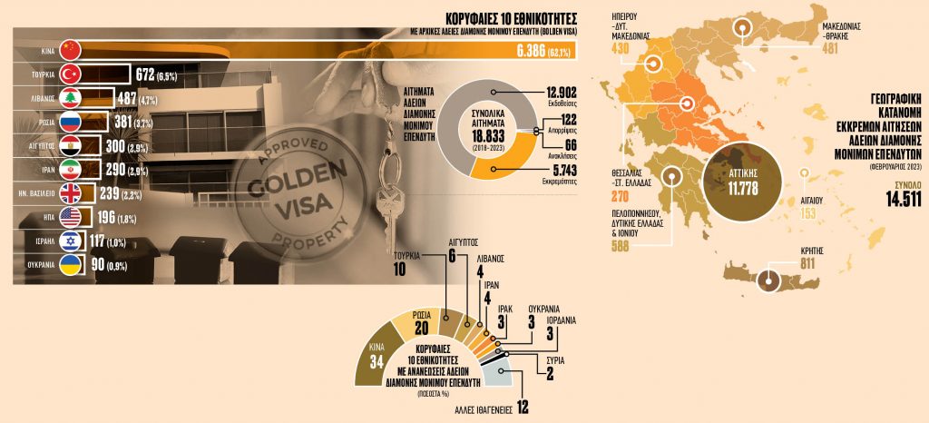 Το 69% αυτών έχει θετική κατάληξη καθώς έχουν εκδοθεί άδειες, το 30% αφορά εκκρεμείς αιτήσεις, ενώ το 1% των αιτημάτων για χορήγηση «Golden Visa» έχει απορριφθεί.