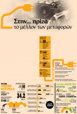 Το πλήθος των φορτιστών στο δημόσιο οδικό δίκτυο αποτελεί κρίσιμη παράμετρο για την απόκτηση ηλεκτρικών οχημάτων από τους πολίτες. Το υψηλό κόστος της αγοράς τους, για την ώρα, περιορίζεται μέσω των προγραμμάτων «Κινούμαι Ηλεκτρικά» για ΙΧ και «Πράσινα Ταξί». Ηδη από το «Κινούμαι ηλεκτρικά ΙΙ», προϋπολογισμού 50 εκατ. ευρώ, το δεσμευμένο ποσό φτάνει τα 34,2 εκατ. ευρώ ενώ έχουν υποβληθεί 12.466 αιτήσεις (οι 2.012 από επιχειρήσεις και οι υπόλοιπες από ιδιώτες). Από αυτές οι 3.246 είναι για ΙΧ αυτοκίνητα και οι υπόλοιπες για δίκυκλα και τρίκυκλα.