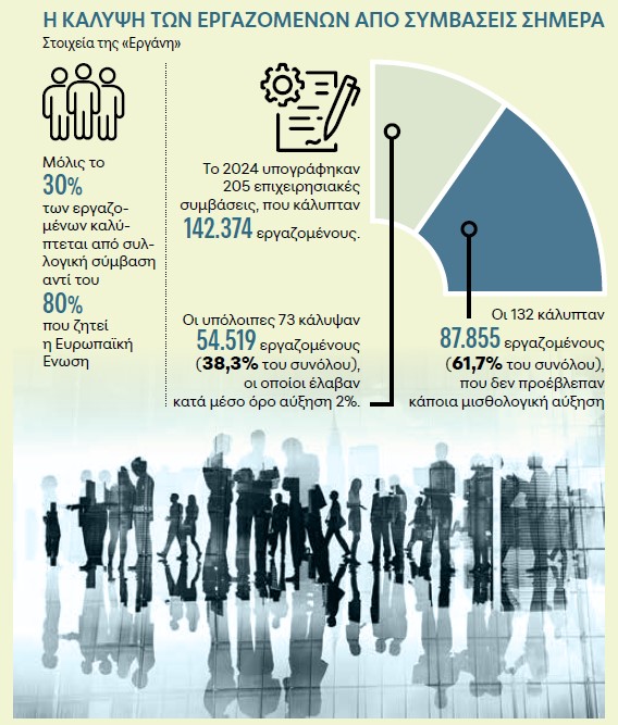 Πρόκειται για μια διαδικασία που θα δώσει τη δυνατότητα να βελτιωθεί η δυνατότητα υπογραφής νέων συλλογικών συμβάσεων εργασίας προκειμένου να αυξηθεί η κάλυψη των εργαζομένων από συμβάσεις από το 25%-30% που είναι σήμερα στο 80% που είναι η ευρωπαϊκή πρόβλεψη.