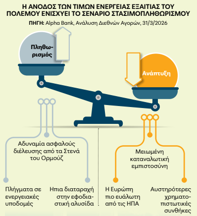 Τότε η Fed αύξησε σημαντικά τα επιτόκια για την τιθάσευση του πληθωρισμού, με την αγορά εργασίας να πλήττεται σημαντικά ως παράπλευρη απώλεια. Στο βασικό της σενάριο σήμερα η Alpha Bank εκτιμά πως η όποια διαταραχή στις εφοδιαστικές αλυσίδες, λόγω των εχθροπραξιών στη Μέση Ανατολή, θα είναι σχετικά διαχειρίσιμη και χωρίς υπερβολές. Σε μια τέτοια εξέλιξη αναμένει υποχώρηση των πληθωριστικών προσδοκιών στην ευρωζώνη και ήπια επίπτωση στην ανάπτυξη.
