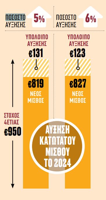 Προς νέα αύξηση της τάξεως του 5% έως 6% στις κατώτατες αμοιβές οδηγούμαστε εντός του 2024. Η διαδικασία θα εκκινήσει – εκ νέου – στο τέλος Ιανουαρίου του 2024 ούτως ώστε να τεθεί σε εφαρμογή ο νέος μισθός μέχρι το τέλος του Μαΐου του 2024.