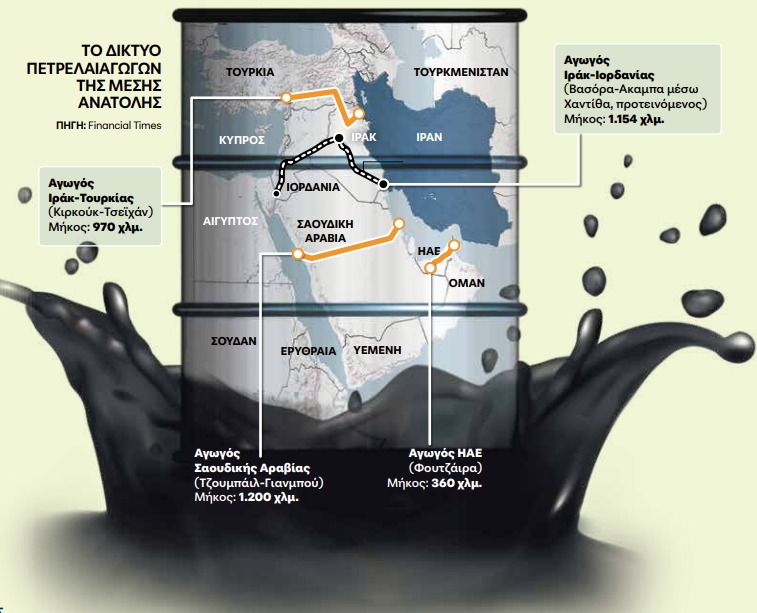 Σε κάθε περίπτωση, η εν εξελίξει πολεμική σύρραξη με επίκεντρο το Ιράν έχει αναδείξει τη στρατηγική αξία του μεγάλου αγωγού Ανατολής – Δύσης μήκους 1.200 χιλιομέτρων που διασχίζει τη Σαουδική Αραβία. Κατασκευασμένος τη δεκαετία του 1980 ενώ μαινόταν ο πόλεμος Ιράν – Ιράκ, έχει μετατραπεί σε «σανίδα σωτηρίας», σύμφωνα με δημοσίευμα των «Financial Times», δεδομένου ότι μεταφέρει 7 εκατ. βαρέλια πετρελαίου ημερησίως στο λιμάνι Γιανμπού της Ερυθράς Θάλασσας, παρακάμπτοντας το Ορμούζ.
