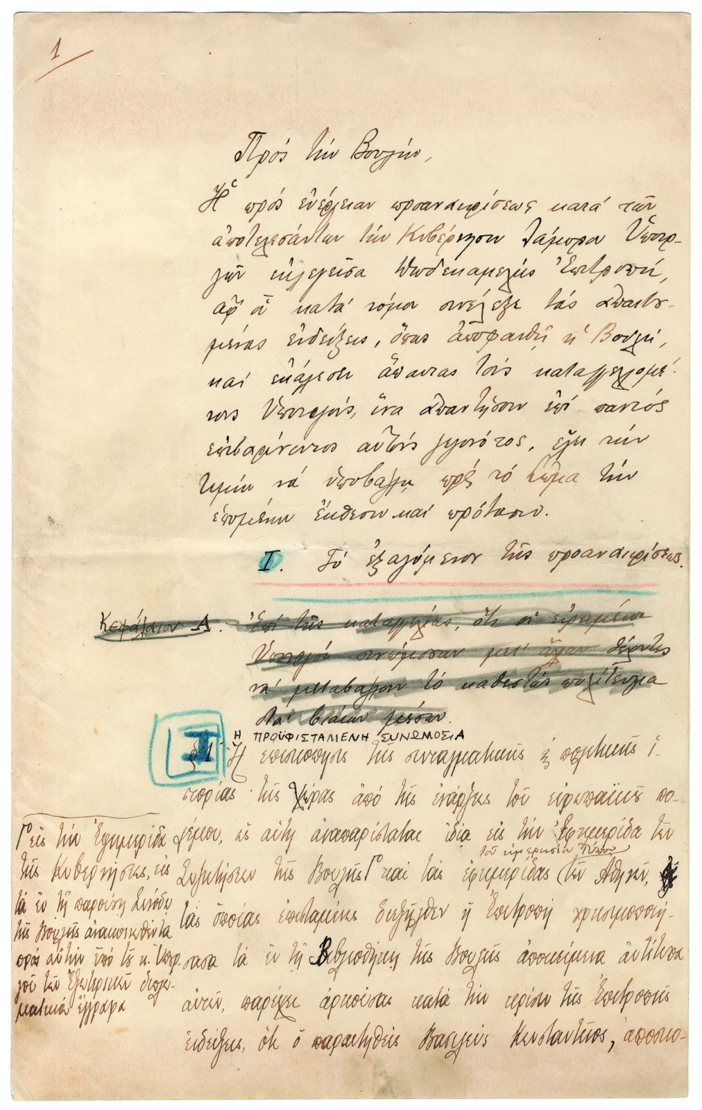 Η πρώτη σελίδα της απολογίας του Σπυρίδωνος Λάμπρου
