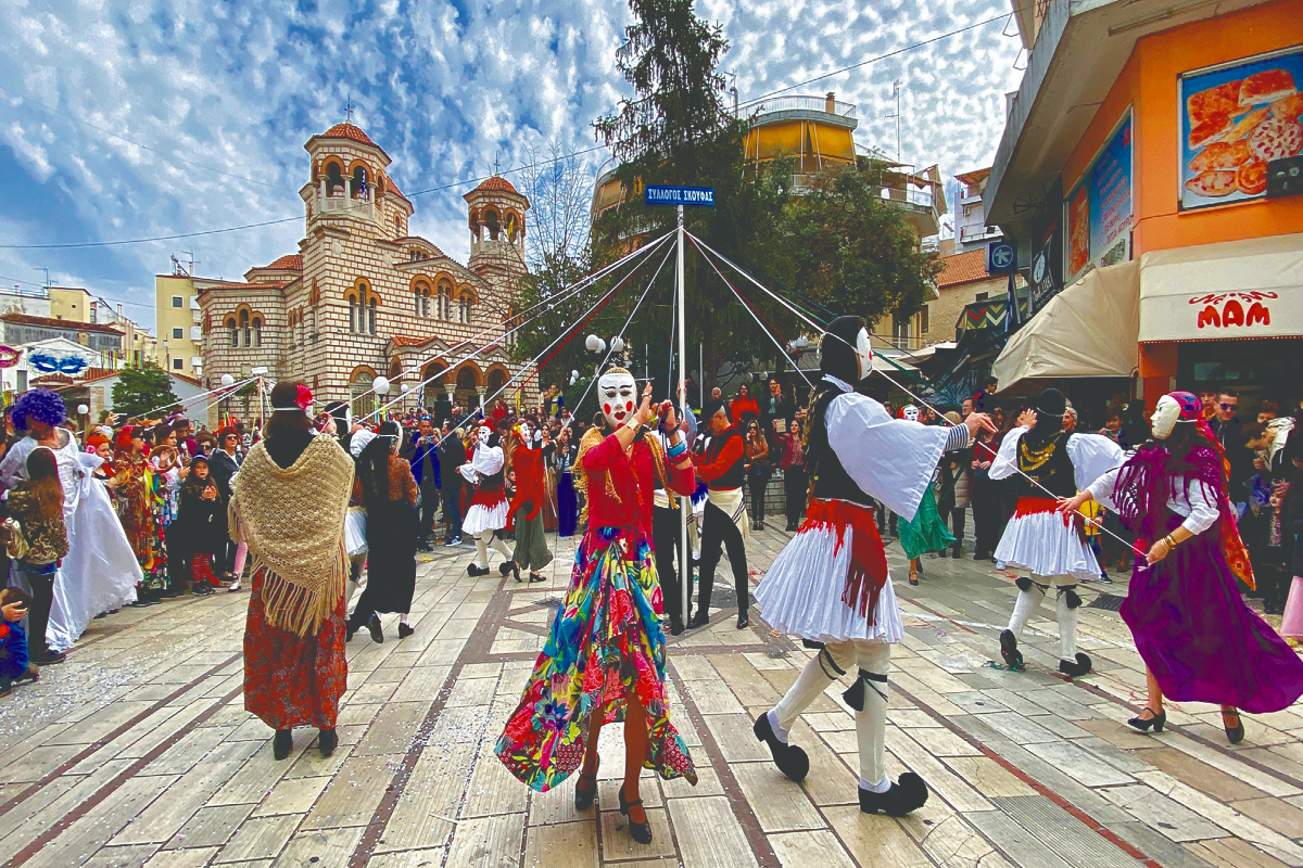 Τους αθυρόστομους Μπαντίδους διαδέχονται την επόμενη μέρα, το Σάββατο της Τυρινής, οι χορευτές στο παραδοσιακό γαϊτανάκι. Πρόκειται για έθιμο που είναι γνωστό σε πολλές περιοχές της χώρας, αλλά στην πόλη μας αναβιώνει από πολλούς συλλόγους. Το γαϊτανάκι αποτελείται από ένα ξύλινο κοντάρι από το οποίο κρέμονται 12 πολύχρωμες κορδέλες και αυτός που το κρατάει φοράει ζωόμορφη μάσκα.