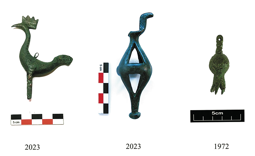 Χάλκινα περίαπτα (φυλακτά, αντικείμενα που θεωρούνταν ότι διαθέτουν μαγικές και αποτροπαϊκές ιδιότητες) του 8ου αιώνα π.Χ. από την ακρόπολη της αρχαίας Μελιταίας