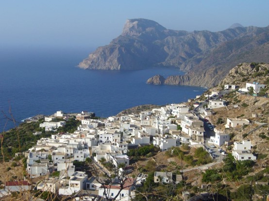 Το Απέρι είναι ένα πανέμορφο ορεινό χωριό, που υπήρξε πρωτεύουσα του νησιού έως το 1892. Οταν εξαλείφθηκε ο πειρατικός κίνδυνος, η πρωτεύουσα μεταφέρθηκε με πρωτοβουλία του τότε οθωμανού καϊμακάμη Οχανές Φερίτ Εφέντη στα Πηγάδια, κοντά στη θάλασσα. Το Απέρι είναι ένας από τους παλαιότερους οικισμούς του νησιού. Στην κορυφή του λόφου που δεσπόζει πάνω από τον οικισμό βρίσκονται ερείπια από μεσαιωνικό κάστρο που προστάτευε την περιοχή. Το μνημονεύει μάλιστα και ο φλωρεντινός γεωγράφος Buondelmonti (1420) με την ονομασία «Κοράκι».