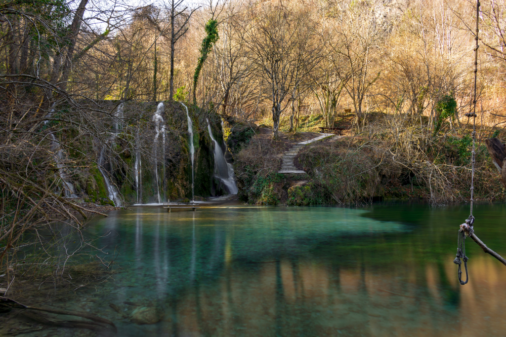 Η περιπλάνηση όμως δεν τελειώνει εδώ. Επειτα από λίγα λεπτά πεζοπορίας, αυτό που πραγματικά κόβει την ανάσα και είναι ο τελικός προορισμός, εμφανίζεται μπροστά μας: Οι καταρράκτες που πέφτουν από ύψος περίπου 6 μέτρων δημιουργούν έναν υπέροχο οπτικοακουστικό συνδυασμό. Ακριβώς πίσω από τους καταρράκτες βρίσκεται μια μικρή σπηλιά με λεπτούς σταλακτίτες να κρέμονται από την οροφή της. Η βλάστηση γύρω από τους καταρράκτες είναι μοναδική.