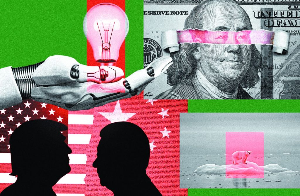 Η επιστροφή του Ντόναλντ Τραμπ στην εξουσία σηματοδότησε την πλήρη εγκατάλειψη του νεοφιλελεύθερου διεθνισμού υπέρ ενός επιθετικού οικονομικού εθνικισμού και ανάπτυξη μιας «ανελεύθερης φιλοαυταρχικής διεθνούς». Η πολιτική των δασμών και κανονισμών χρησιμοποιείται ως εργαλείο για την επαναφορά της βιομηχανικής παραγωγής στις ΗΠΑ και ως μοχλός πίεσης σε γεωπολιτικούς αντιπάλους και συμμάχους. Ενώ όμως οι δασμοί μπορεί να προκαλέσουν στασιμοπληθωριστικές πιέσεις, η τεχνολογική έκρηξη (AI) ίσως λειτουργήσει ως αντίρροπη δύναμη, διατηρώντας τη μεγέθυνση. Ωστόσο, οι δασμοί αυξάνουν το κόστος ζωής για τα χαμηλά εισοδήματα, επιδεινώνοντας την ανισότητα. Eτσι η βάση της σταθερότητας στις δυτικές δημοκρατίες, η μεσαία τάξη, βρίσκεται υπό καθεστώς έντονης πίεσης.
