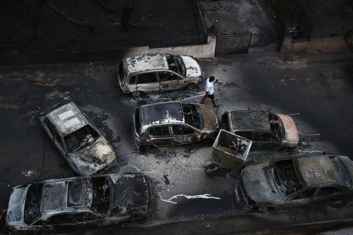 Σε μια στροφή στον Νέο Βουτζά, υψώνεται μια σειρά μικρά κυπαρίσσια στη μνήμη νεκρών. Λίγα μέτρα παρακάτω, κάποιος έχει γράψει στον τοίχο «Δεν Ξεχνώ» και από πάνω την ημερομηνία που πάγωσε τον χρόνο για εκατοντάδες οικογένειες εδώ. Είναι οι επιζώντες. Οι επιζήσαντες πια. Εκείνοι που έχασαν αγαπημένους τους, οι εγκαυματίες που μπαινοβγαίνουν σε νοσοκομεία, όσοι έχασαν τα σπίτια τους, όσοι επέζησαν από τύχη κι αυτό δεν καταφέρνουν να το συγχωρήσουν στον εαυτό τους.