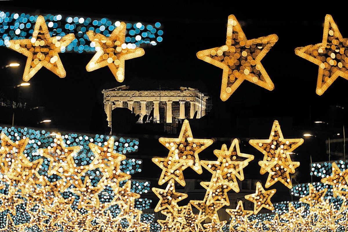 Περπατώ και σηκώνω το βλέµµα στα µπαλκόνια που λάµπουν από τα δεκάδες χρωµατιστά φωτάκια που αναβοσβήνουν.