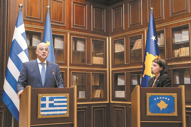 Η απόφαση της Αθήνας να αναβαθμίσει, σε πιο πολιτικό επίπεδο, τις σχέσεις της με την Πρίστινα εντάσσεται σε έναν σχεδιασμό διεύρυνσης της επιρροής της στη Βαλκανική – χωρίς όμως να ξεπεραστεί η «κόκκινη γραμμή» της αναγνώρισης της ανεξαρτησίας του Κοσόβου. Η επίσκεψη του υπουργού Εξωτερικών Νίκου Δένδια στην πρωτεύουσα του Κοσόβου προχθές, Παρασκευή 4 Ιουνίου, ουσιαστικά επισημοποίησε την επιλογή αυτή. Η αλλαγή που σημειώνεται θα επιτρέπει στο προσωπικό του Γραφείου Εμπορικών και Οικονομικών Υποθέσεων του Κοσόβου – το οποίο αναμένεται να μετονομαστεί σε «Γραφείο Συμφερόντων» – να πραγματοποιεί συναντήσεις με στελέχη της αρμόδιας Διεύθυνσης Βαλκανικών Υποθέσεων (Α3) του υπουργείου Εξωτερικών – όχι όμως και σε ανώτερο υπηρεσιακό ή υπουργικό επίπεδο.