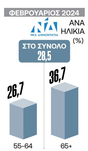 Είναι το γεγονός ότι οι μεγαλύτερες ηλικιακές ομάδες, και ειδικότερα η συντριπτική πλειονότητα των συνταξιούχων, είναι εκείνες που πλήττονται κατά μείζονα λόγο από την ακρίβεια, δίχως να έχουν κάποια βάσιμη προσδοκία ουσιαστικής διεξόδου. Το γεγονός δε ότι στη συγκεκριμένη συγκυρία ανακοινώθηκε πως λόγω δημοσιονομικής στενότητας δεν θα υπάρξει επίδομα Πάσχα, προστίθεται στις επιβαρυντικές παραμέτρους των αρνητικών διαθέσεων της συγκεκριμένης ομάδας πολιτών έναντι της κυβέρνησης. Υπενθυμίζεται ότι στην ηλικιακή ομάδα άνω των 65 ετών η ΝΔ συγκέντρωσε ποσοστό 52,5% στις εκλογές του Ιουνίου 2023, έναντι 17,9% του ΣΥΡΙΖΑ και 14,6% του ΠαΣοΚ.