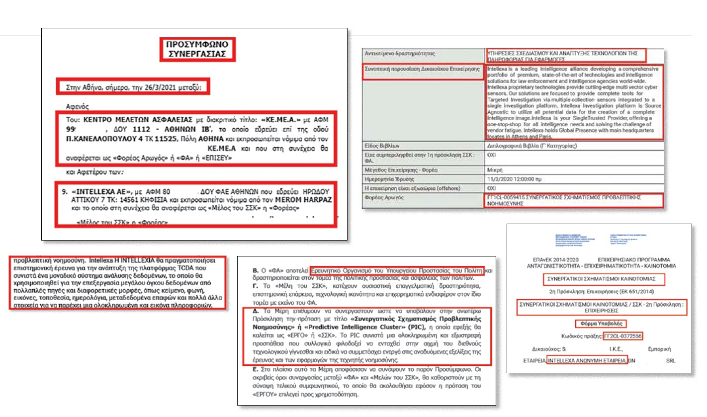 Οσον αφορά τη συμμετοχή της Intellexa, που ήταν μόνο δημιουργός παράνομων λογισμικών, αυτή μνημονεύεται ως «αναλυτής εικόνας και ήχου». Οπως σημειώνεται, «η Intellexa θα πραγματοποιήσει επιστημονική έρευνα για την ανάπτυξη της πλατφόρμας TCDA που συνιστά ένα μοναδικό σύστημα ανάλυσης δεδομένων, το οποίο θα χρησιμοποιηθεί για την επεξεργασία μεγάλου όγκου δεδομένων από πολλαπλές πηγές και διαφορετικές μορφές, όπως κείμενο, φωνή, εικόνες, τοποθεσία, ημερολόγια, μεταδεδομένα επαφών και πολλά άλλα στοιχεία για να παρέχει μια ολοκληρωμένη εικόνα πληροφοριών».