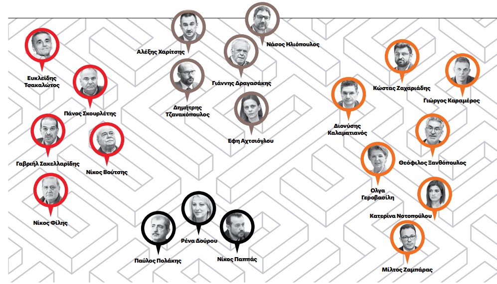 Πέρα όμως από τους τεχνοκράτες απαιτούνται και πρόσωπα που θα δώσουν τη μάχη των «καφενείων» και των ΜΜΕ. Οι συζητήσεις στο επιτελείο του πρώην πρωθυπουργού δεν έχουν φθάσει σε αυτό το σημείο, όμως στο κάδρο έχουν μπει πρόσωπα όπως π.χ. ο Διονύσης Καλαματιανός, ο Θεόφιλος Ξανθόπουλος, ο Μίλτος Ζαμπάρας, ο Γιώργος Καραμέρος, η Κατερίνα Νοτοπούλου, ο Κώστας Ζαχαριάδης, ο Θανάσης Θεοχαρόπουλος, ο Γιάννης Ραγκούσης κ.ά.