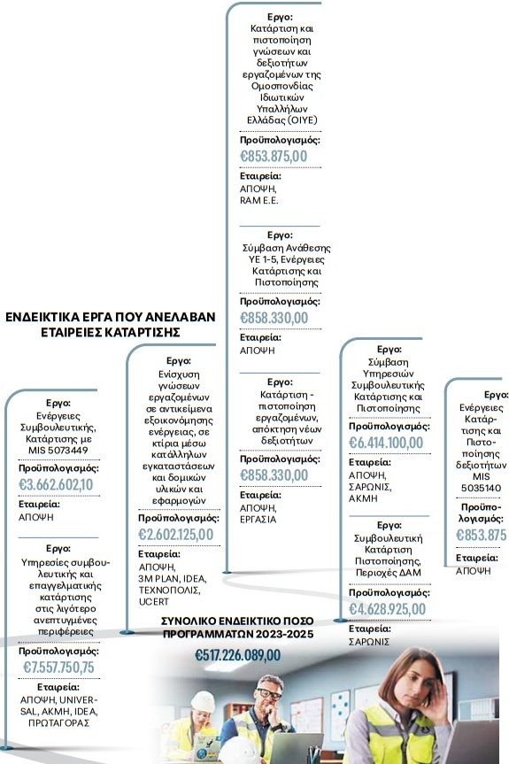 Εργα κατάρτισης άνω του μισού δισεκατομμυρίου ευρώ κατέληξαν στα χέρια των ελάχιστων εταιρειών που πρωταγωνιστούν στην εξαιρετικά επικερδή επιχείρηση της κατάρτισης στην Ελλάδα.
